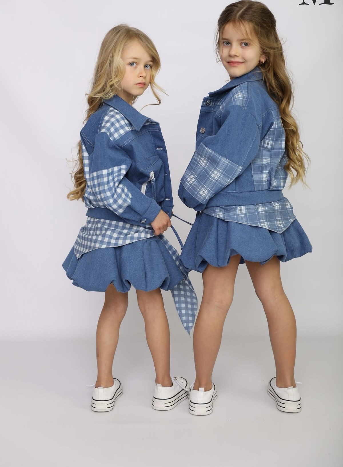 Modernus džinsinio stiliaus švarkelis drąsiai ir išskirtinei mažajai ✨ (stambesniais langeliais)