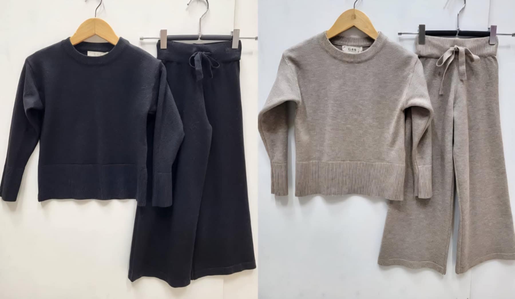 Oversize viršus, kelnytės platėjančios, juosmuo ant gumos.
