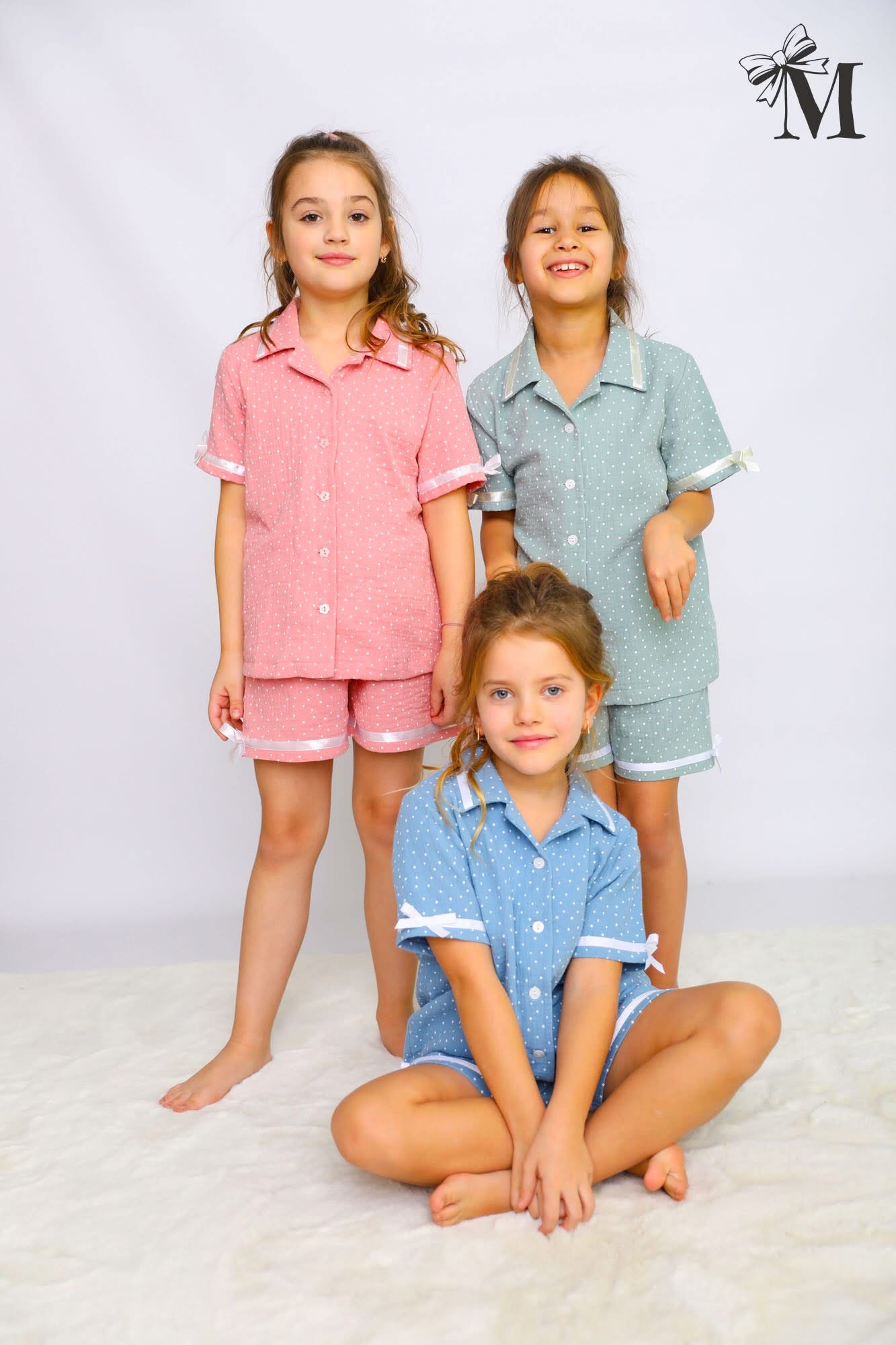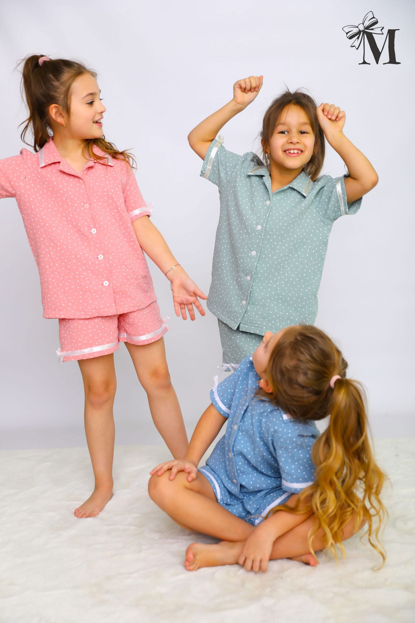 Dviejų dalių muslino pižama mergaitėms.