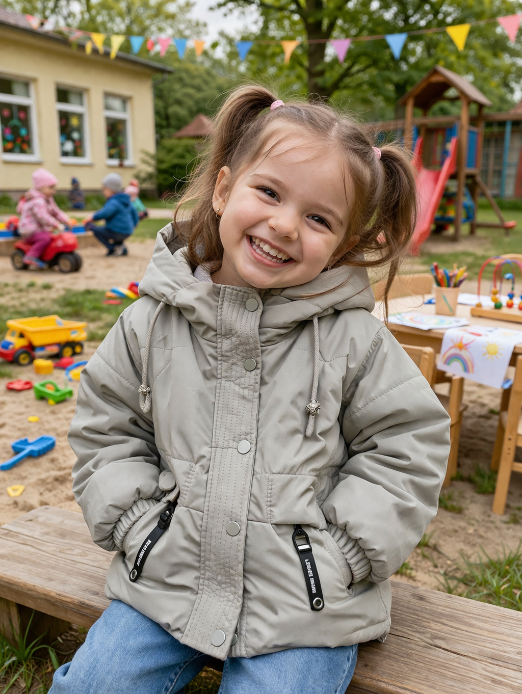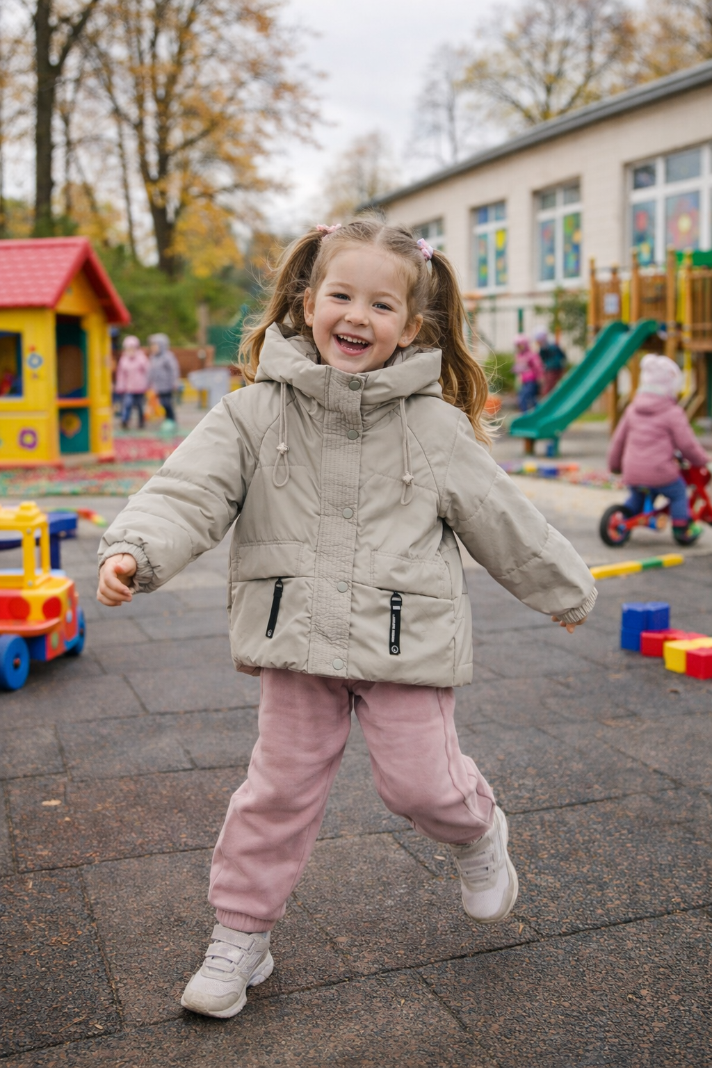 Ši striukė – puikus pasirinkimas aktyviems vaikams, kurie mėgsta žaisti lauke bet kokiu oru. Lengva, bet šilta, ji užtikrina komfortą vėsesnėmis dienomis ir leidžia vaikui laisvai judėti.