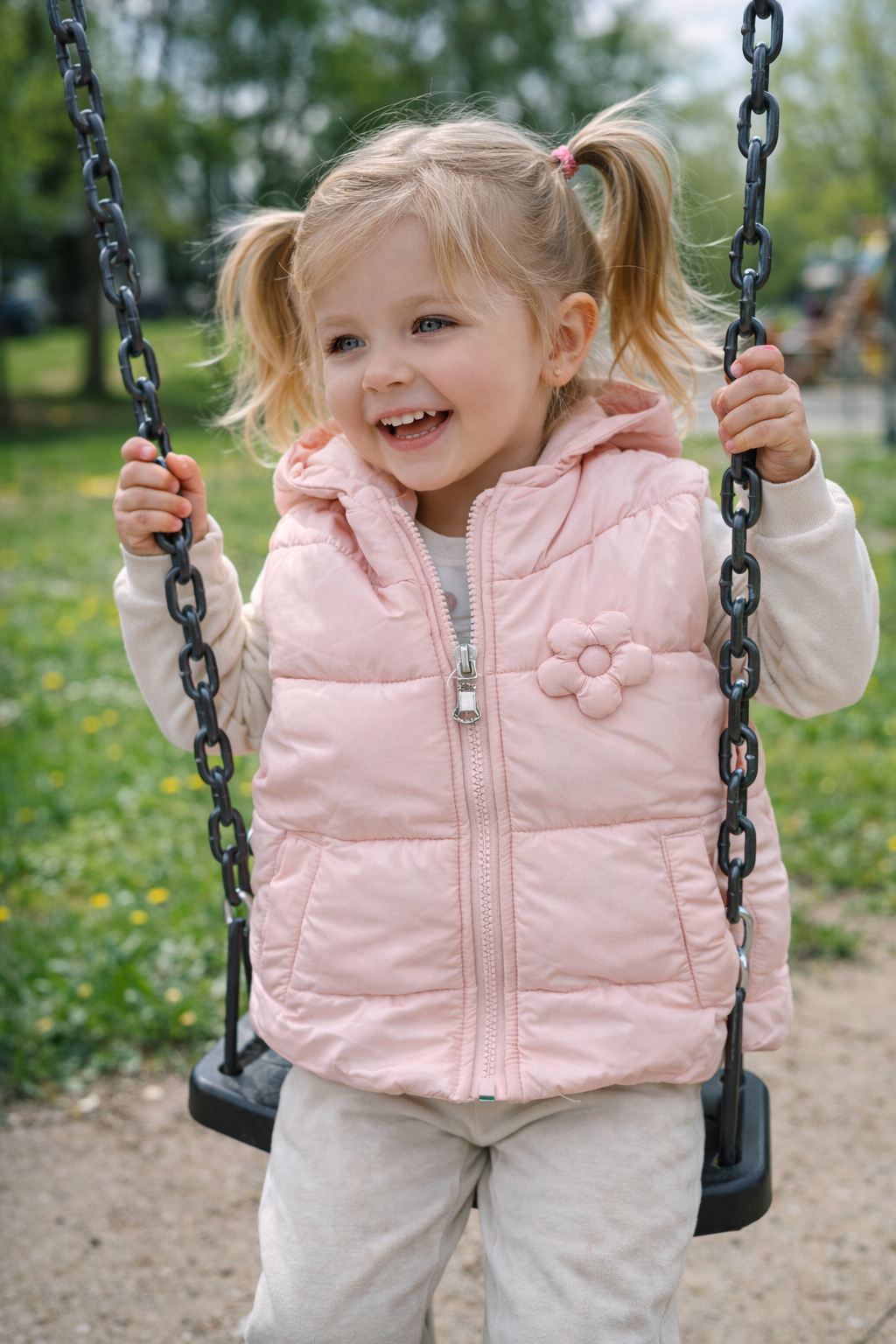 Ieškote patogios ir stilingos liemenės mergaitei? Ši vaikiška liemenė – puikus pasirinkimas pavasariui, rudeniui ar vėsiems vasaros vakarams, kai reikia lengvo, bet šilto drabužio.