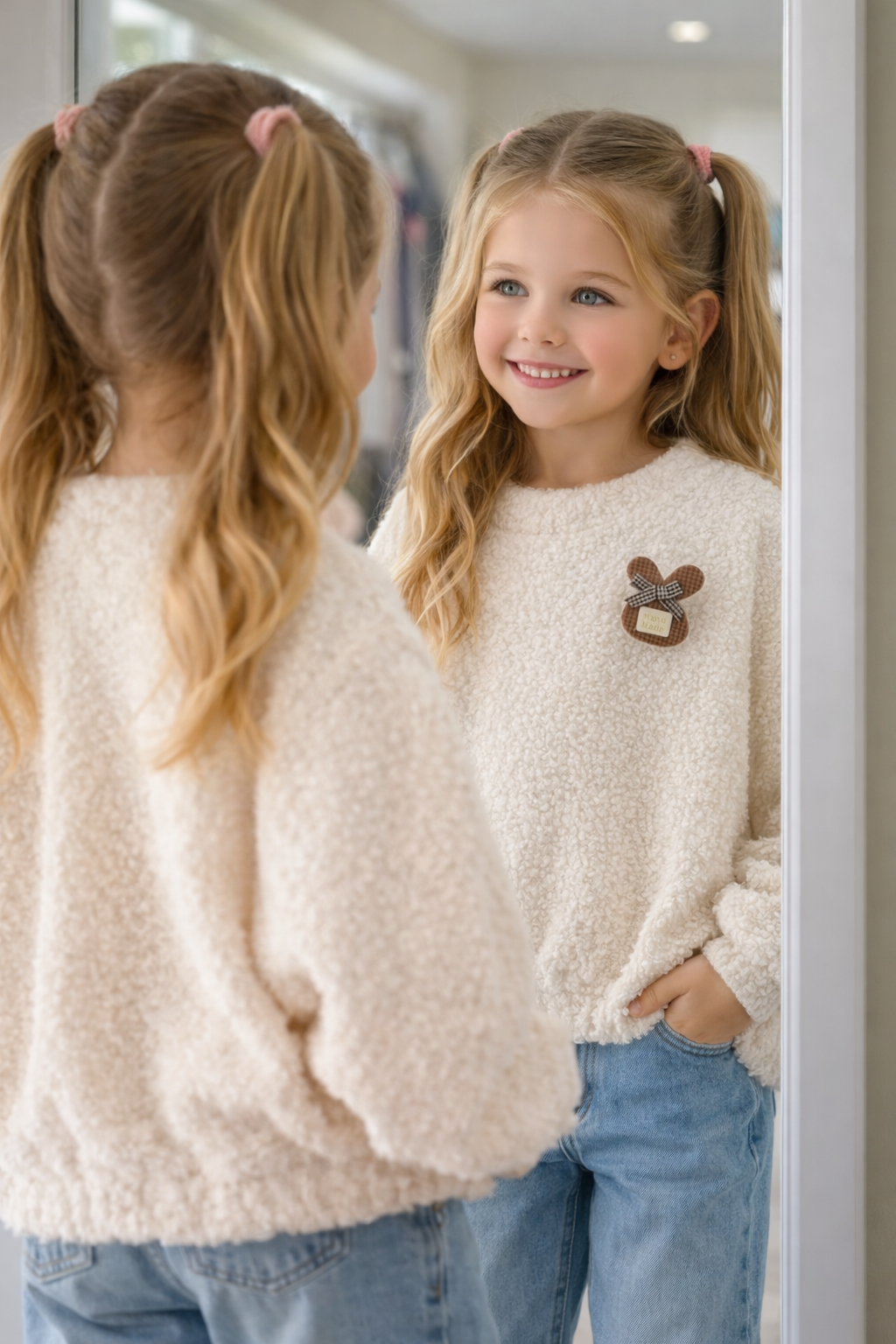 Šis vaikiškas megztukas mergaitei – puikus pasirinkimas ieškančioms jaukumo, šilumos ir stiliaus viename. Minkštas, pūkuotas audinys suteikia ypatingą komforto jausmą, todėl megztukas idealiai tinka vėsesnėms dienoms.