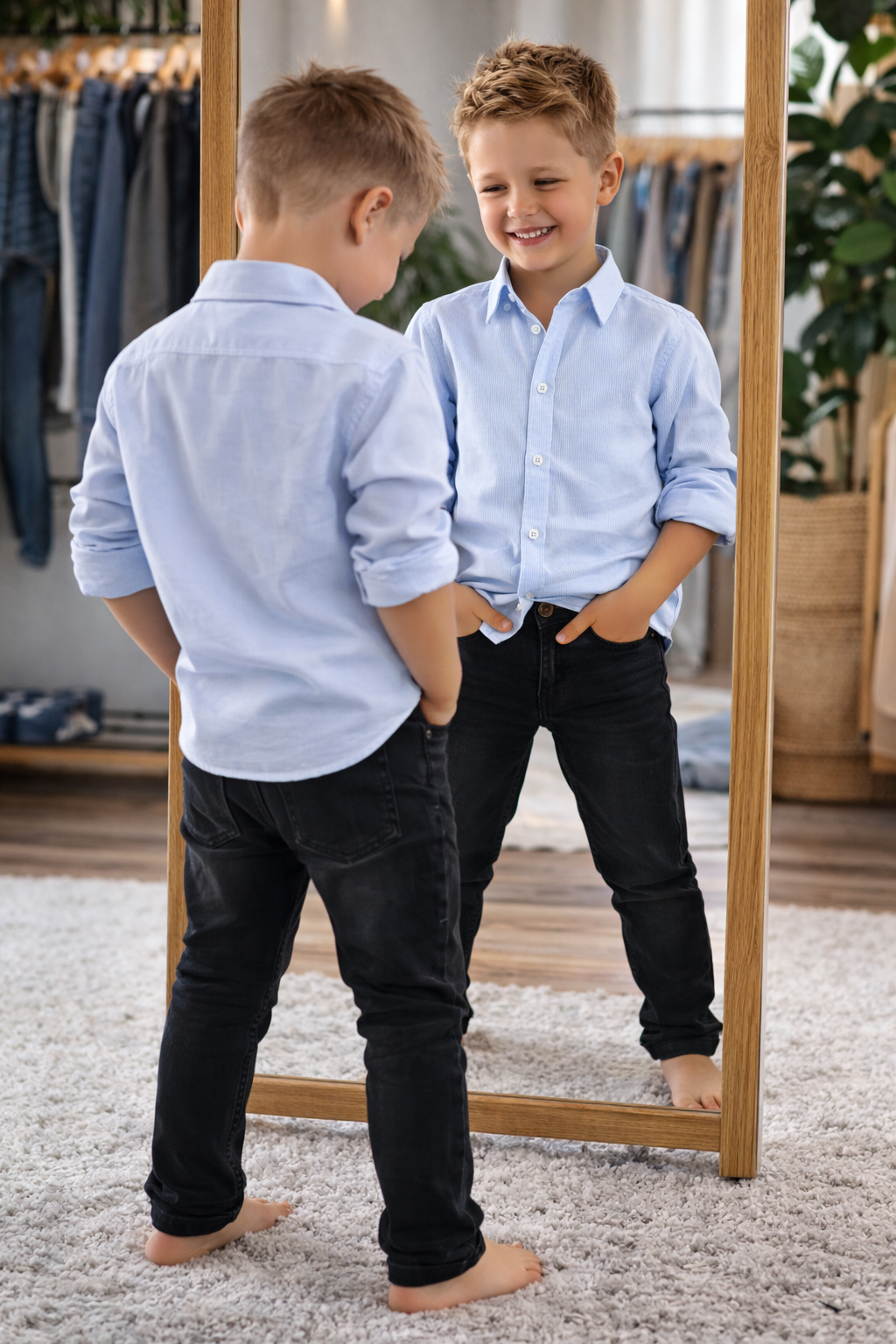 Klasikiniai ir lengvai derinami vaikiški marškiniai berniukams, tinkantys tiek kasdienai, tiek šventėms. Švelni, lengva medžiaga užtikrina komfortą visos dienos metu, o patogus kirpimas leidžia vaikui laisvai judėti.